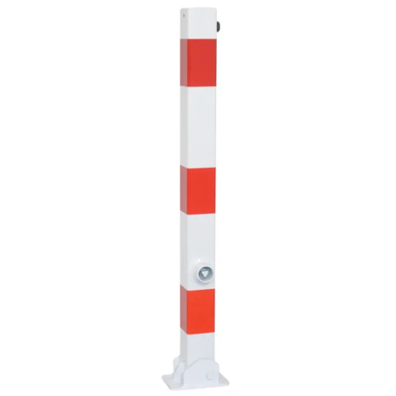 Barrier post square tube 70 x 70 mm with steelcap 900 mm above ground foldable andremoveable with ground socket part-no.470.10, approx. 500 mm below ground, to befixed by plugs with base plate 100 x 150 mm,hot-dip galvanized