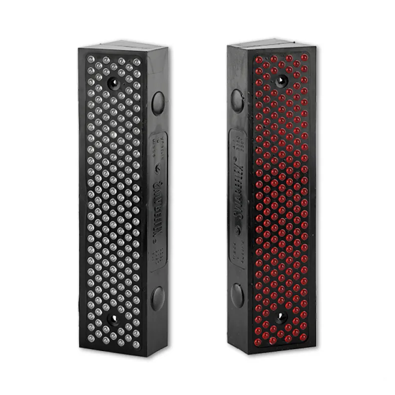 Swareflex products are characterized by the use of glass beads for reflective material. As a result, these products distinguish themselves in terms of service life, degree of reflection and insensitivity to pollution. The use of glass elements creates a UV-resistant reflection surface that is also scratch-resistant. The result is a long service life with a minimally decreasing reflection level. All Swareflex reflectors are provided with CE Marking.