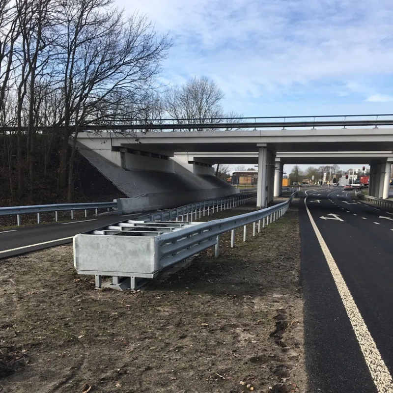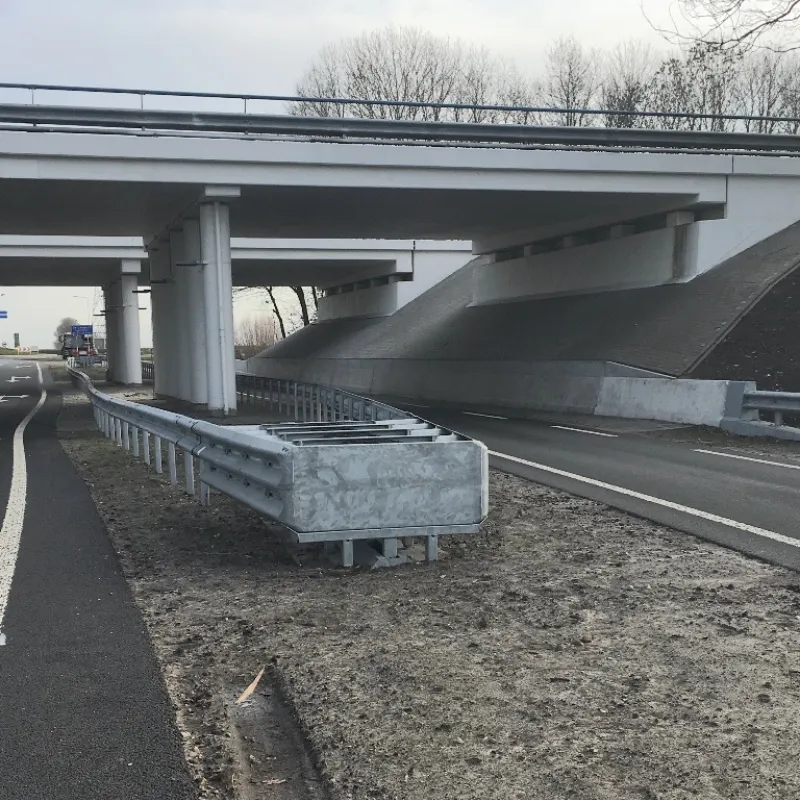 Naturally, the Leonidas crash barriers have been fully and successfully tested in accordance with EN1317 and are provided with CE Marking, which means that this crash barrier complies with the Construction Products Regulation EU/305/2011. They are also approved for installation on Rijkswaterstaat's acreage.