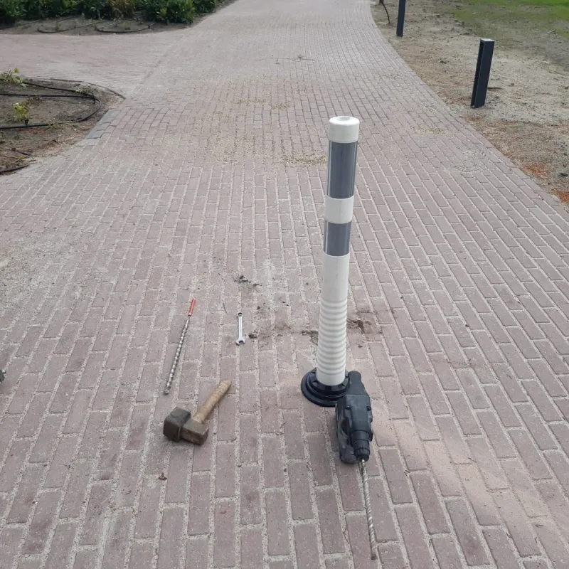 Prevent damage to vehicles or injury to cyclists by installing a flexible barrier poles made of high-quality and durable polyurethane. After a collision, these flexible bollards automatically return to position. Install these striking flexible posts at the start of cycle paths or as a separation between the road and cycle path. If a cyclist unexpectedly hits these poles, these poles will bend so that no injury is caused. If vehicles unexpectedly drive against or over these flexible folding beacons, the vehicle will not be damaged and the flexible poles will return neatly into position.