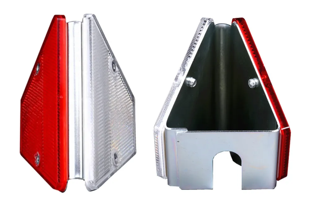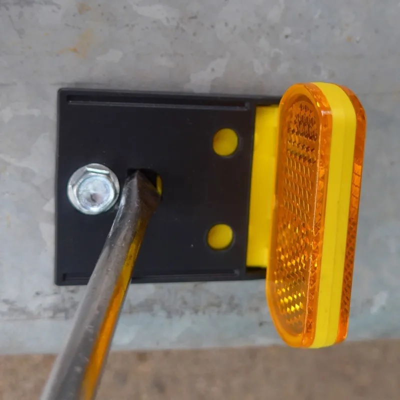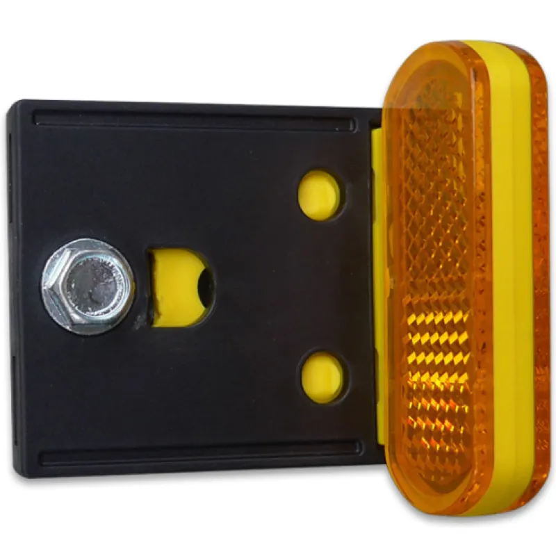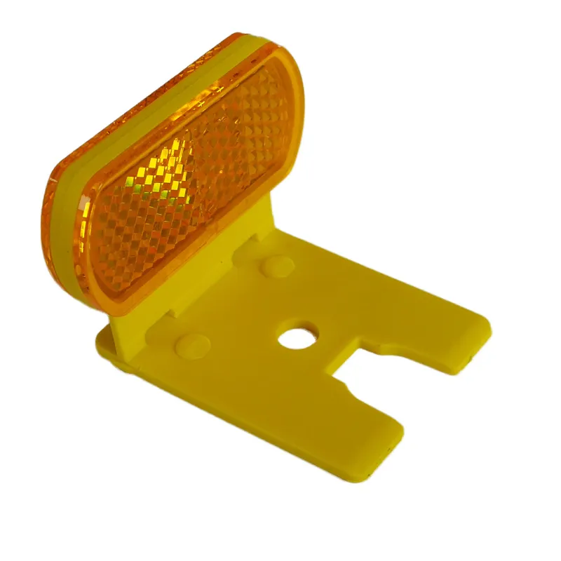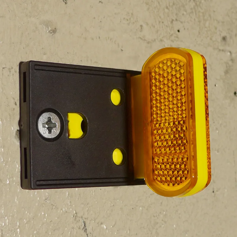 Prismatic reflectors guarantee a high degree of retroreflection. These flexible barrier reflectors are compact, easy to install and replace. The reflectors are clicked into a holder and can be replaced quickly and easily in the event of a collision. The reflector can be removed from the holder using a screwdriver. These barrier reflectors are small and only protrude 2 cm outside the barrier. The chance of a collision is therefore small. The reflectors are provided with CE marking.