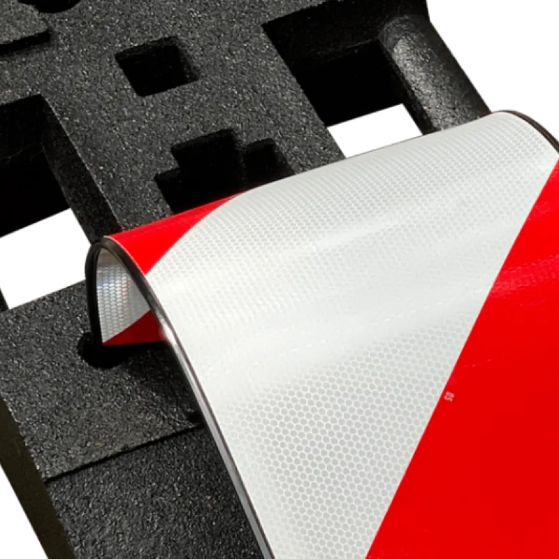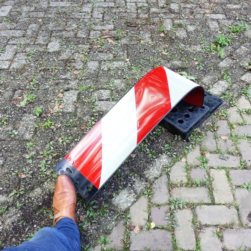 These traffic guide beacons / beacons / beacon shields / shields are compact, lightweight and take up little space during transport. Because the markers are flexible, they bend easily in the event of an unexpected collision, resulting in little or no damage. The staff shields are provided with retro-reflective film RA2 on both sides and can be reversed, which means they have a longer lifespan than the traditional guide beacons. Order these flexible guide beacons directly online from Traffic Safety Systems.