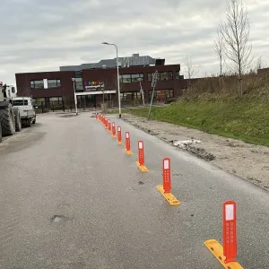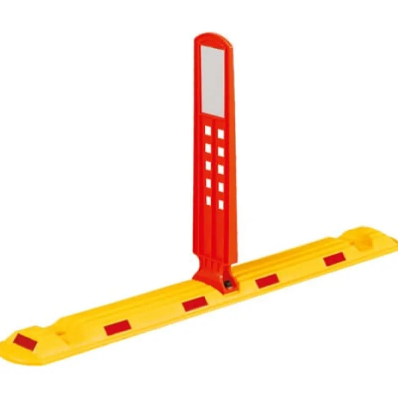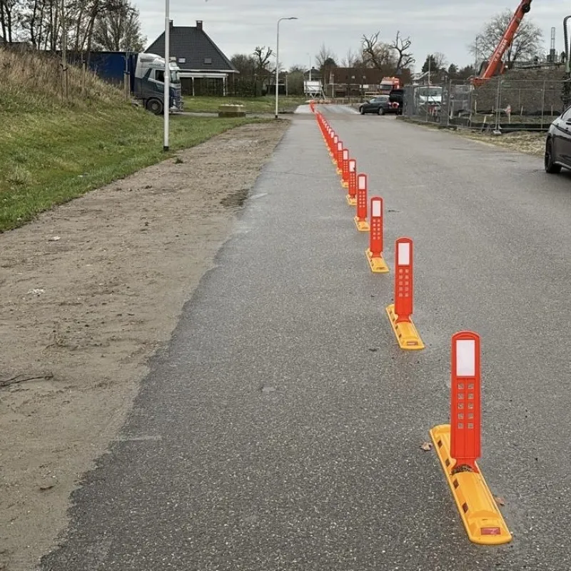 Traffic Safety Systems supplies these unique lane dividers that ensure striking and safe lane separation. The 120 cm long striking signal yellow base consists of unbreakable, environmentally friendly and UV resistant PPC material. Flexible guide beacons measuring 55 cm high and 12 cm wide are mounted on this base. These long lane dividers with high guide markers are very suitable for longitudinal roadblocks. Thanks to the modular system, the flexible beacon can be mounted in no time at all and, if necessary, replaced or exchanged for a flexible beacon with a smaller height.