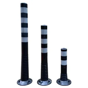 Plastic flexible barrier poles black with reflective tapes