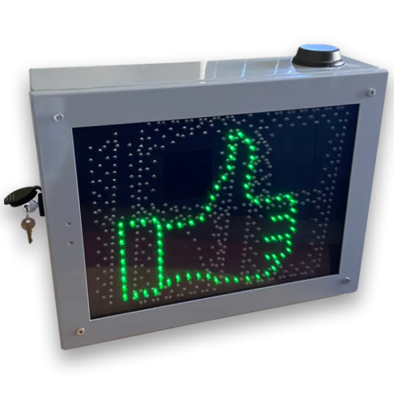 Road users adjust their driving behavior positively when they see our eye-catching speed display. In addition to the accurately measured speed, the road user is "rewarded" with a green thumbs up if he adheres to the maximum driven speed. Road users who exceed the speed limit will see the speed driven flashing with red LEDs and a red thumbs down. To avoid habituation effect, the speed display can be switched on and off remotely via our portal U-Rijdt.nl. The speed measurements via the built-in radar continue as usual in order to make a good traffic analysis. Placing speed displays contributes to increasing road safety.