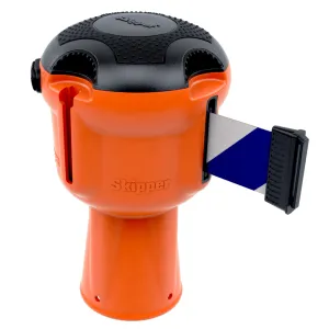 Quickly set up a barrier or mark a work area with the Skipper retractable safety barrier with 9 meters of rollable barrier tape. The barrier marking tape holder can be easily and quickly placed on our traffic cones. Pull the barrier tape out of the holder and easily connect it to the next barrier tape holder with the special clip. The barrier tape can also be connected to special wall brackets or magnetic wall brackets. The length of the retractable barrier tape can be adjusted with the built-in braking system. The ribbon can be adjusted to the desired length via the button on the outside of the barrier tape holder. The button with which the barrier tape can be blocked ensures that the cones remain stable and that the barrier tape remains taut, even in strong wind. Thanks to the built-in retractor, the barrier tape neatly rolls back into the barrier tape holder. This keeps the barrier tape protected and guarantees years of use. The patented Skipper barrier tape holder is robust and reliable due to the high-quality materials and strong cloth tape. The versatile barrier tape holder is used in a variety of industries, from construction to airports and shipping, to events, retail, facility management and much more.
