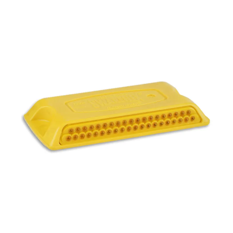 SWAREFLEX road marking studs are ideal for making the road layout visible in darkness and poor weather; they can be heard and felt when they are driven over. Ribbing on the underside of the GLOBEMARKER strengthens the structure of the body and enables it to best spread pressure onto the substructure. It also increases adhesion when the markers are stuck down. The GLOBEMARKER product versions meet the light technology requirements of the EN 1463 standard.