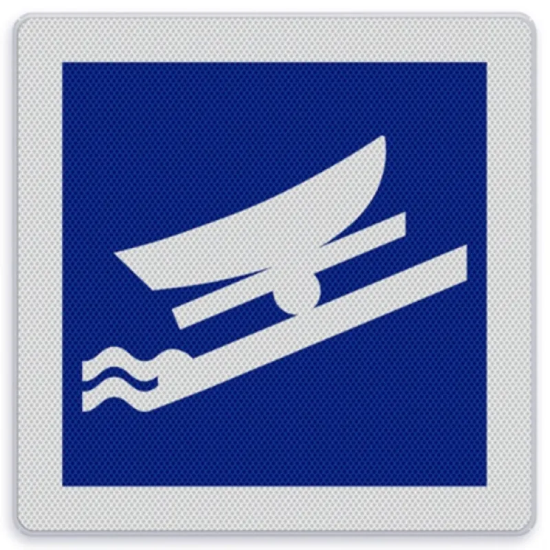 The shipping sign E.22 is executed in accordance with the guidelines for Traffic Signs Shipping (BPR), established by the Ministry of Transport, Public Works and Water Management.