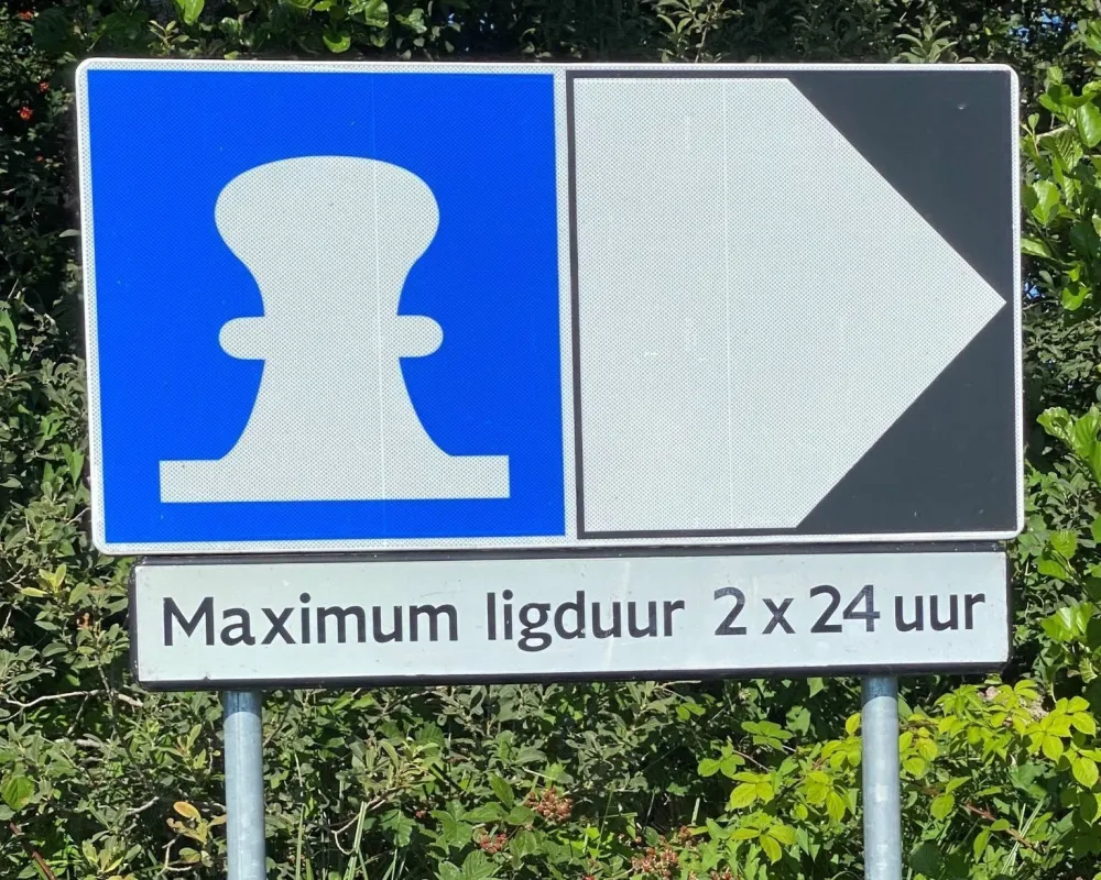 The shipping sign E.24 is executed in accordance with the guidelines for Traffic Signs Shipping (BPR), established by the Ministry of Transport, Public Works and Water Management.