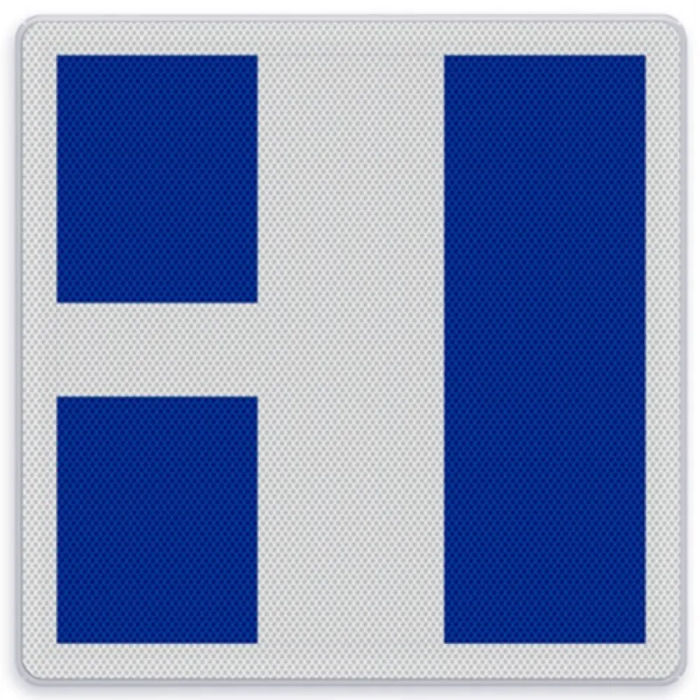 The shipping sign E.5.8 is executed in accordance with the guidelines for Traffic Signs Shipping (BPR), established by the Ministry of Transport, Public Works and Water Management.