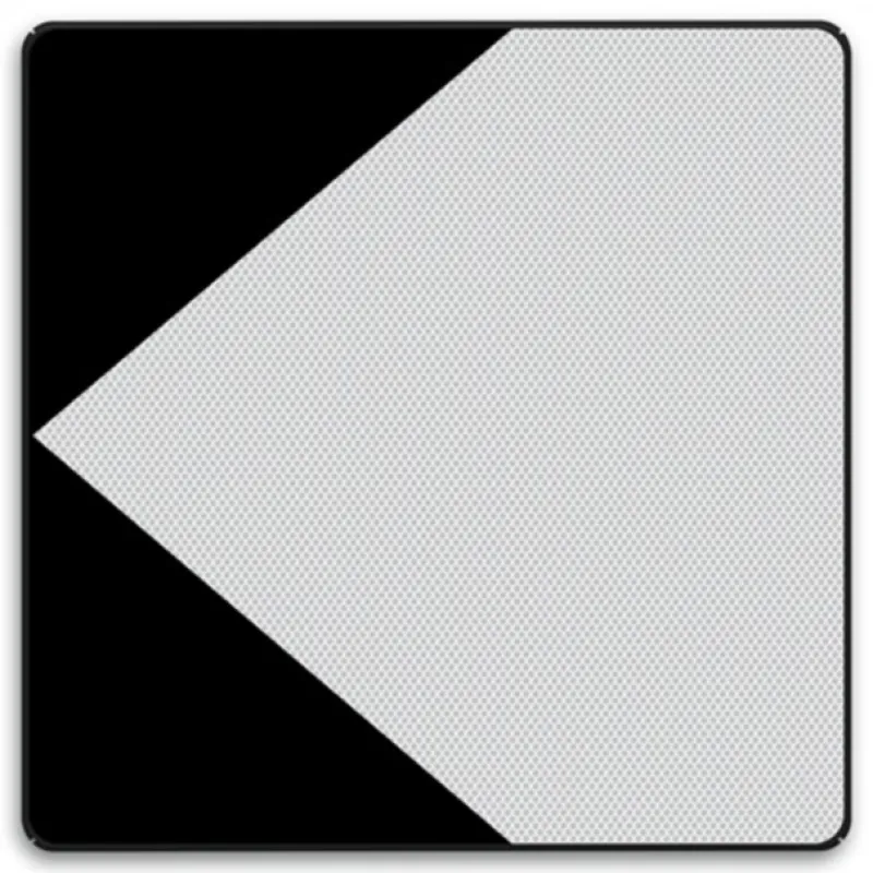 Side or dot boards are added to the left or right of a main character. The boundary of a route subject to a prohibition or designation applies, can be indicated by means of these signs. The height of these signs is equal to the height of the main sign. The width