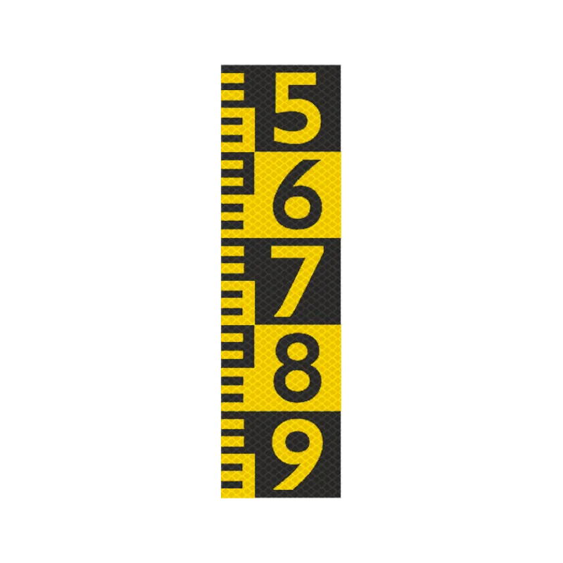 A graduated height scale is used when a certain accuracy of reading is possible and required. In principle, a height scale is placed on the starboard side of the passage opening as seen from an approaching ship. The available vertical clearance is the number of meter blocks plus the number of decimeter blocks above the waterline.