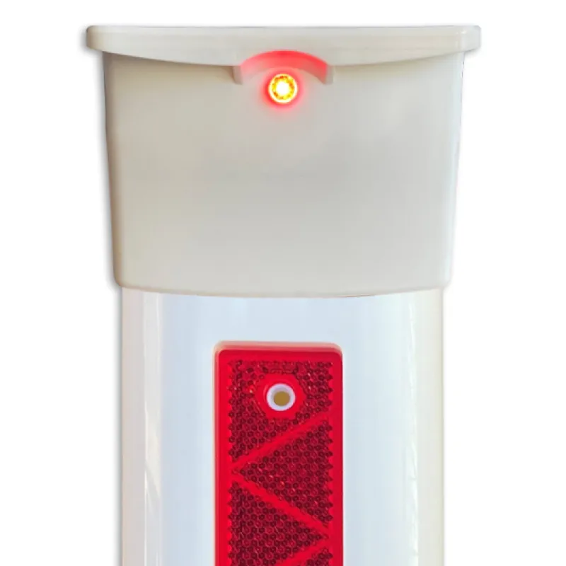 Solar-Powered Smart LED-Delineator. Our LED-delineator is the best solution to increase roadsafety by black spots, sharp curves and on dark roads. Dangerous curves ahead? Good news!! Install our solar-powered smart delineators to reduce run-off-the-road crashes. The high bright LEDs give a perfect guidance over a long distance. This Smart Delineator Cap is powered by solar energy and does not need any wires. Combined with a special charge and power save management this led delineator never runs out of battery. This guarantees an optimum availability at any location.