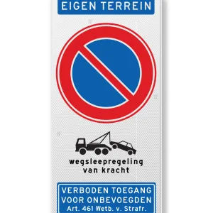 Traffic sign forbidden to park, own property, tow away regulation