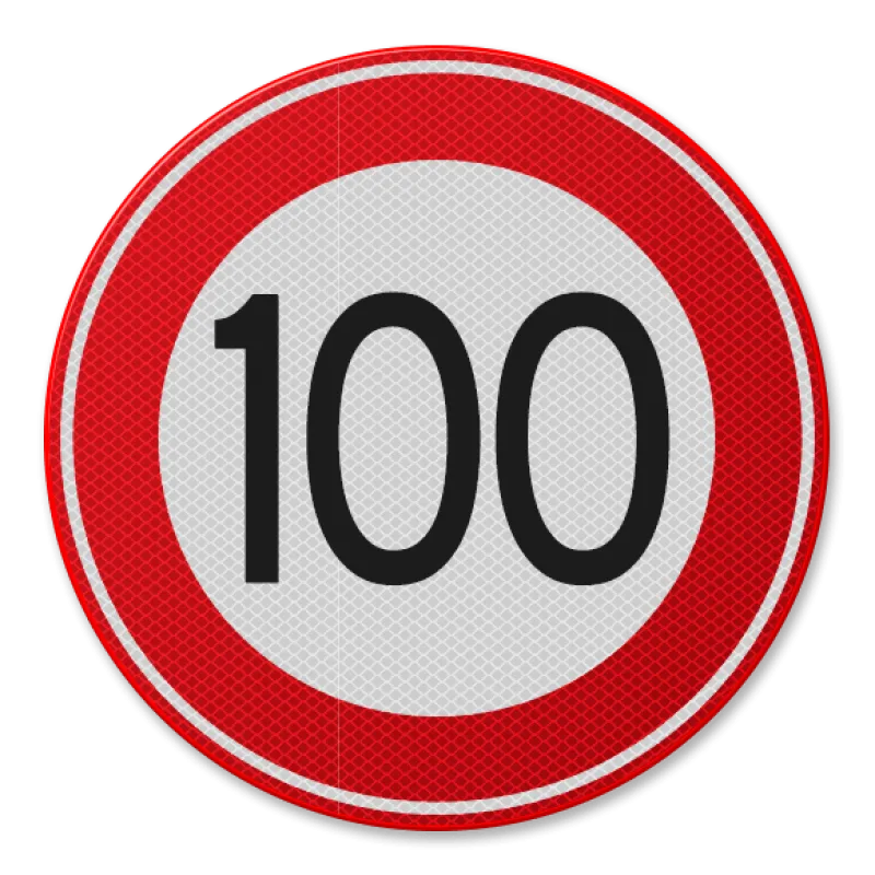 ✓ Official traffic sign 100 km/h ✓ Reflective class 2/3 ✓ Ø40, 60, 80 of 100 cm DOR