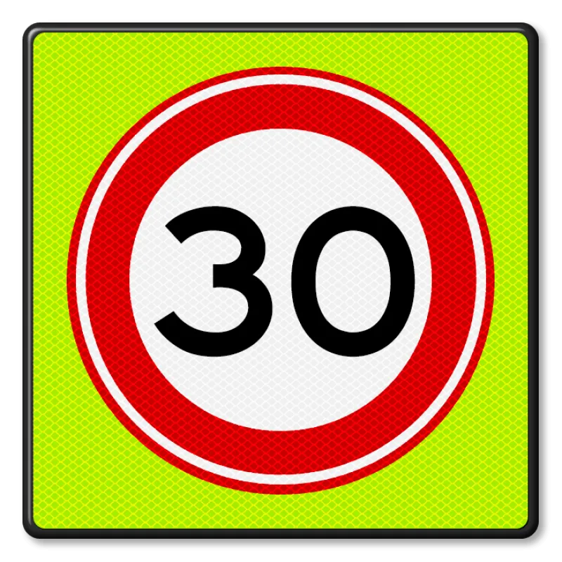 Fluorescent speed sign 30 km per hour with reflective film