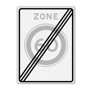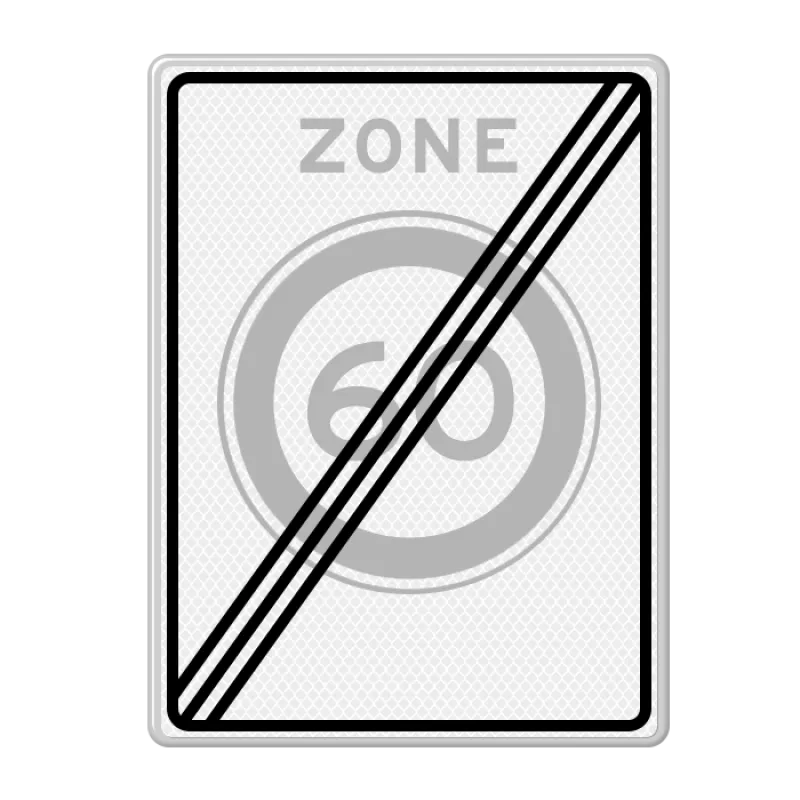 Speed sign end zone 60 km with reflective film