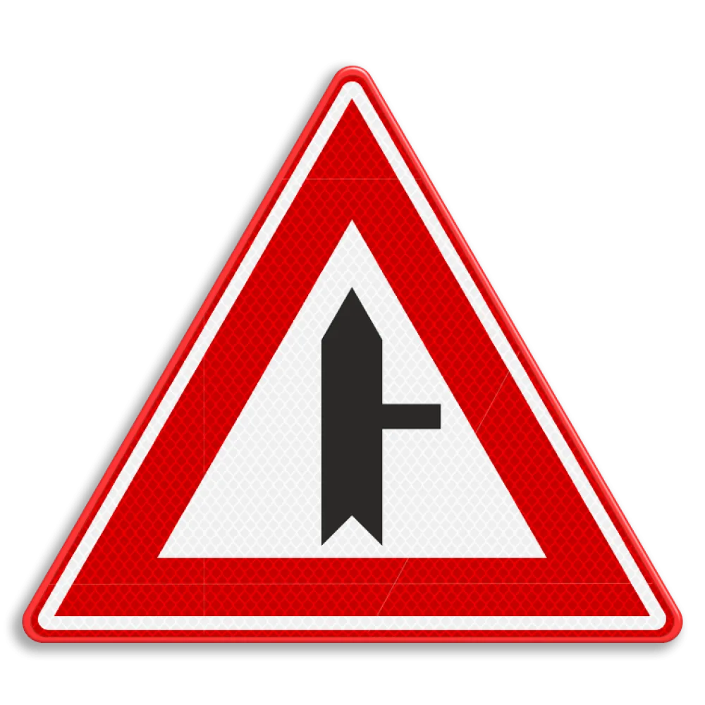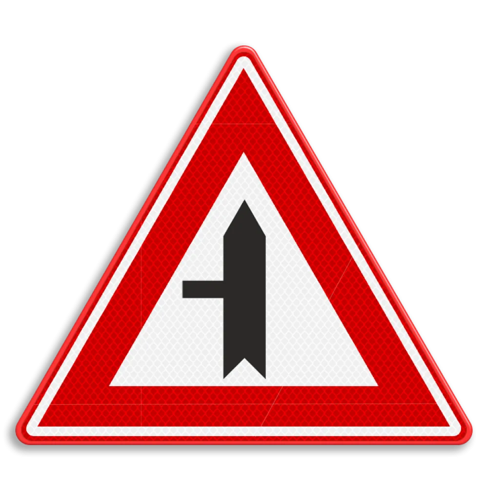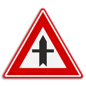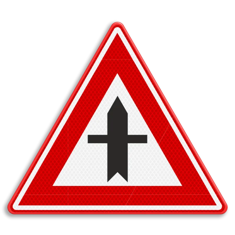 Official RVV B03 traffic sign indicates that you are approaching a priority intersection. As a driver on this road, you have priority over drivers coming from side roads, both left and right.