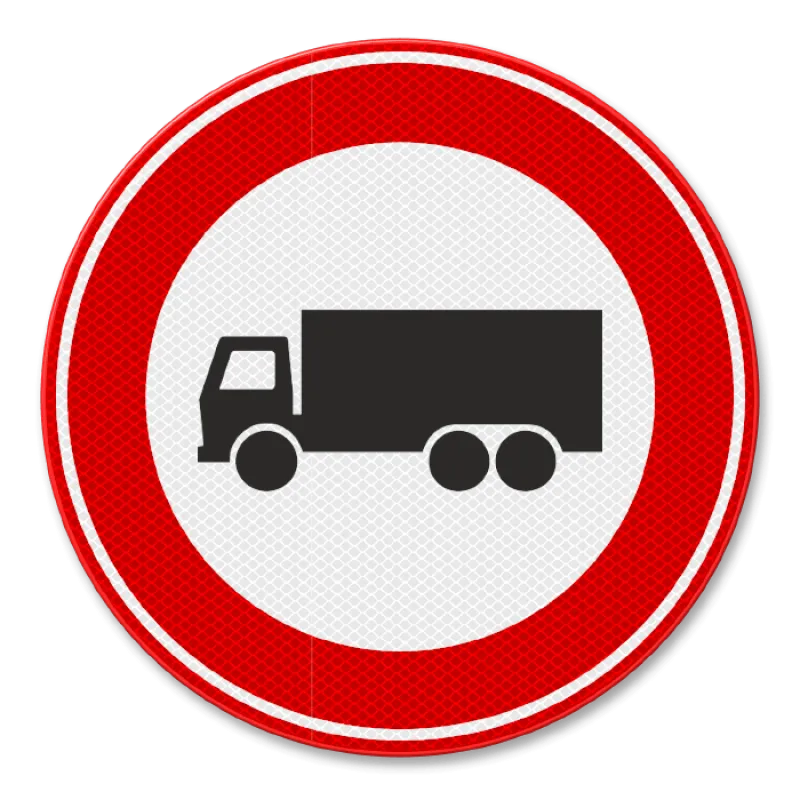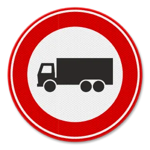 Official traffic sign RVV C07 closed to trucks indicates a driving ban for trucks.