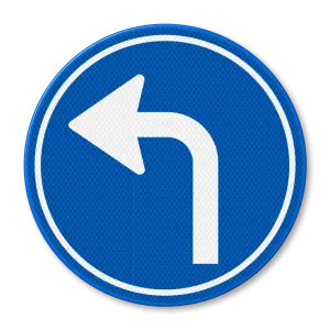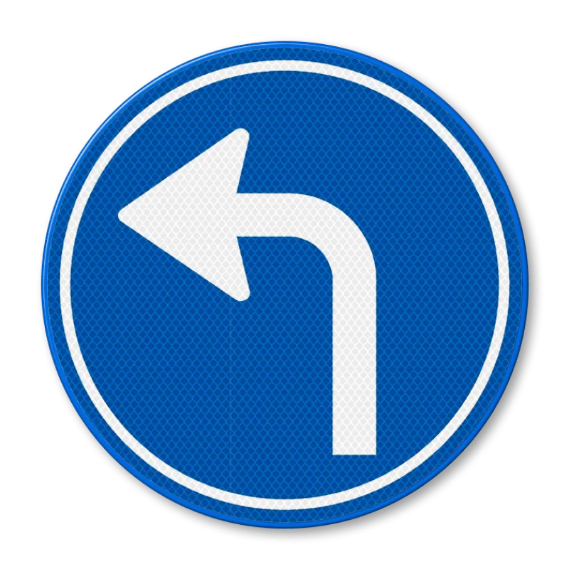 The turn left compulsory sign is provided with durable high-quality prismatic retro-reflective film class 1, 2 or 3. This reflective film has been specially developed for traffic signs and ensures optimal night visibility in all weather conditions and at all distances. More visible traffic signs ensure that up to 50% fewer nighttime accidents occur.
