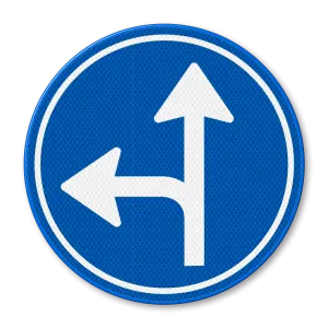 Traffic sign RVV D06l - Driving straight ahead or turning left mandatory