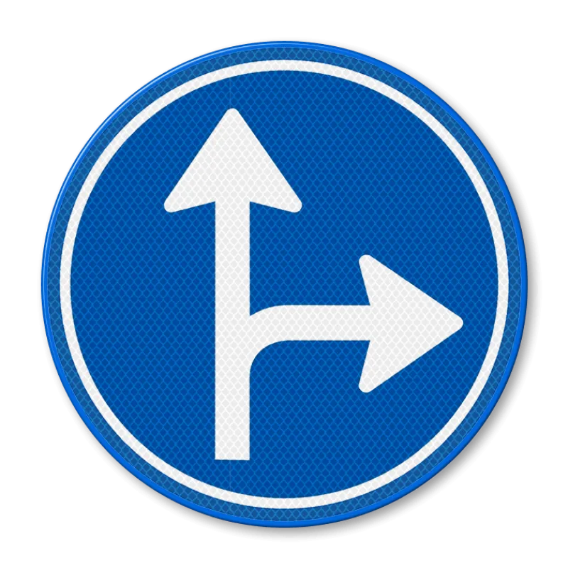 Traffic sign RVV D06r - Driving straight ahead or turning right mandatory