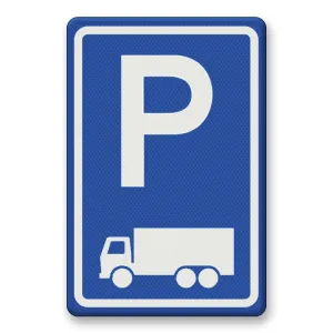 Official traffic sign RVV E08c indicates a parking space that is intended only for the vehicle category, or group of vehicles, indicated on the sign. In the case of this sign E8c, only trucks may use the parking facility.