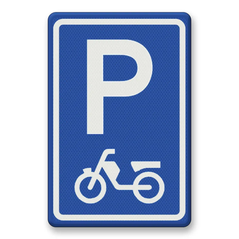 The mopeds parking sign is provided with durable high-quality prismatic retro-reflective film class 1, 2 or 3. This reflective film has been specially developed for traffic signs and ensures optimal night visibility in all weather conditions and at all distances. More visible traffic signs ensure that up to 50% fewer nighttime accidents occur.