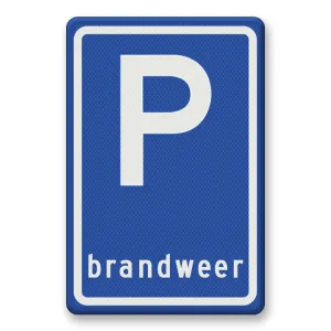 Official traffic sign RVV E08j indicates a parking space that is intended only for the vehicle category, or group of vehicles, indicated on the sign. In the case of this sign E8j, only fire brigade may use the parking facility.