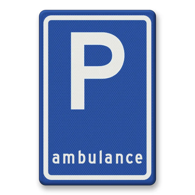 The ambulance parking sign is provided with durable high-quality prismatic retro-reflective film class 1, 2 or 3. This reflective film has been specially developed for traffic signs and ensures optimal night visibility in all weather conditions and at all distances. More visible traffic signs ensure that up to 50% fewer nighttime accidents occur.