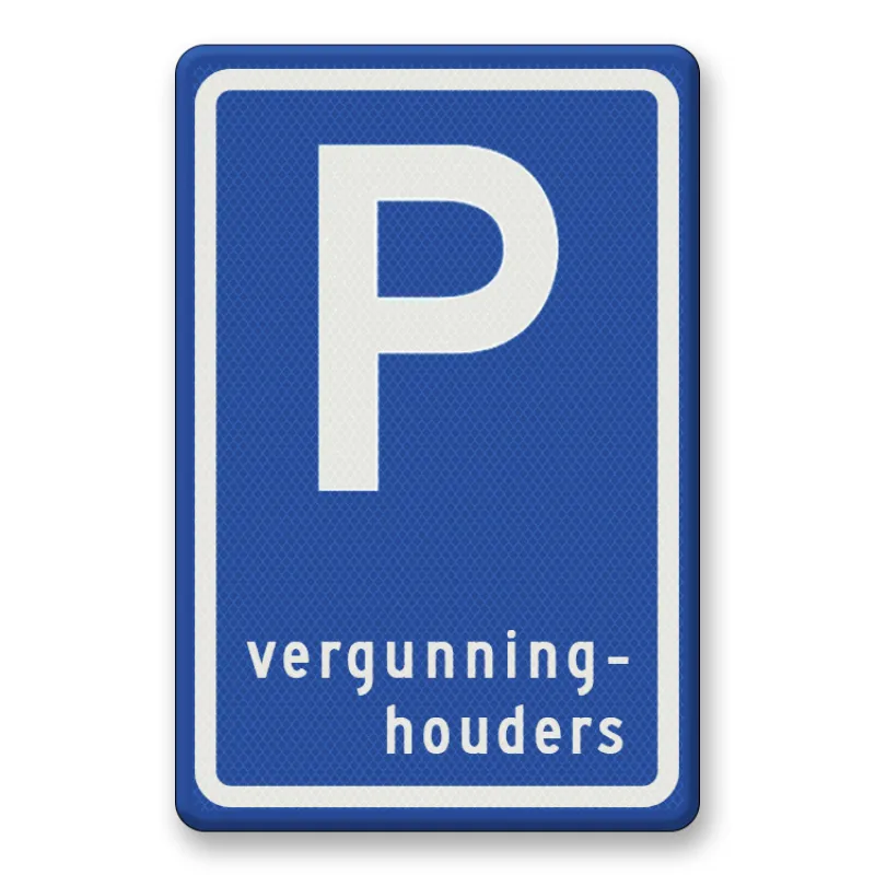 The permit holders parking sign is provided with durable high-quality prismatic retro-reflective film class 1, 2 or 3. This reflective film has been specially developed for traffic signs and ensures optimal night visibility in all weather conditions and at all distances. More visible traffic signs ensure that up to 50% fewer nighttime accidents occur.