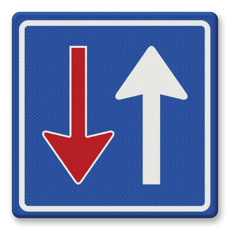 Official traffic sign RVV F06 oncoming traffic must wait indicates that drivers from opposite directions must allow traffic approaching from this direction to pass in front.