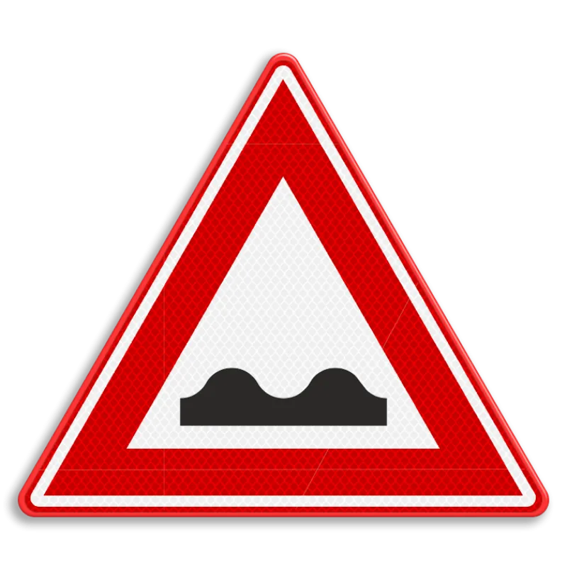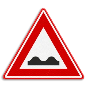 Official traffic sign RVV J01 gives a warning for a poor road surface. Road users know that they have to adjust their speed after passing this traffic sign.