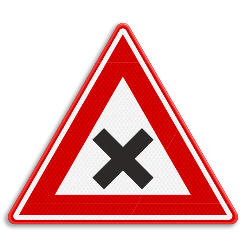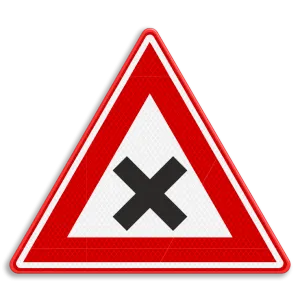 Official traffic sign RVV J08 gives a warning for approaching a dangerous intersection.