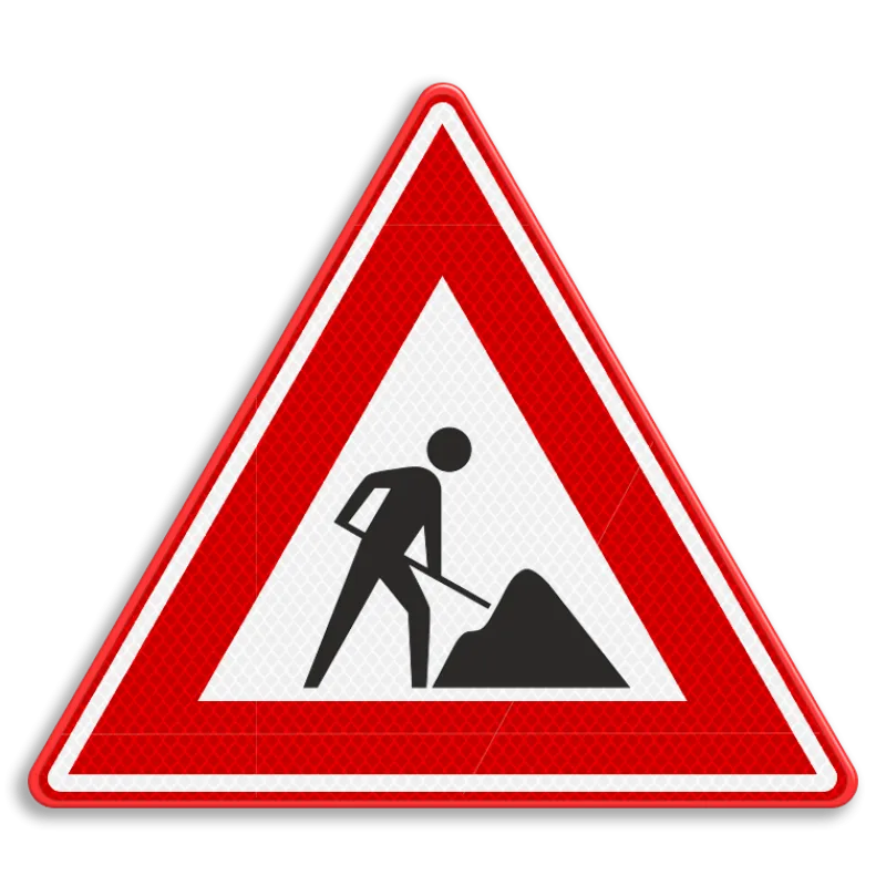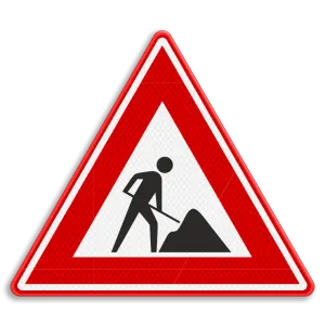 Official traffic sign RVV J16 gives a warning for approaching a work in progress. After passing this sign, road users know that they have to pay attention and adjust their speed.