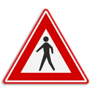 Official RVV J23 traffic sign warns you for approaching an unmarked pedestrian crossing. After passing this sign, road users know that they have to pay attention and adjust their speed.