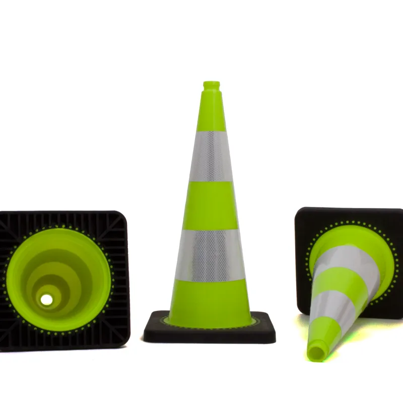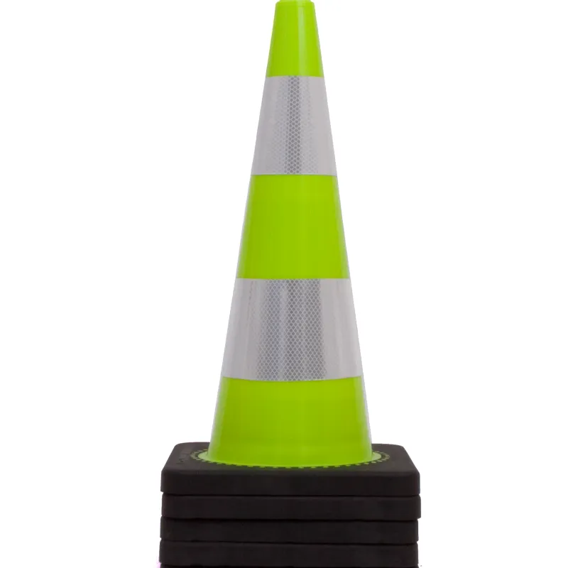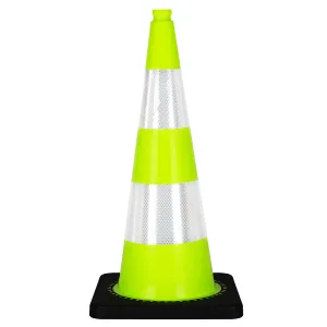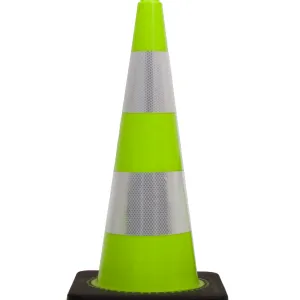 Traffic cone 75cm fluor green with 2 retroreflective tapes class 2