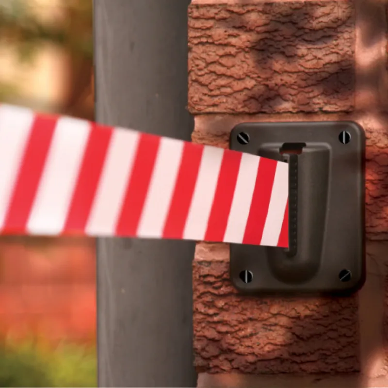 Attach the barrier tape or marking tape to any surface with Skipper's receiver clips. Pull the barrier tape from a Skipper or Skipper XS unit and slide the clip at the end into this receiver clip. The Skipper wall bracket is ideal in places where the same work area must be regularly marked or cordoned off. The receiver clip can also be used to attach Skipper bins, safety dispensers and sanitizer brackets. The Skipper Wall Bracket can be fixed with 4 screws (not included).