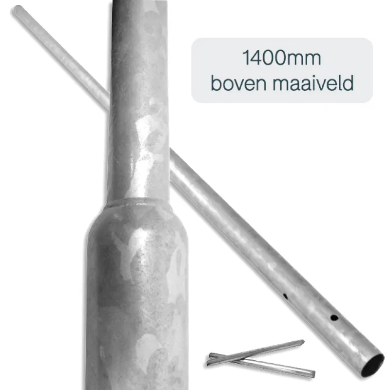 - Hoogte 1400mm boven de grond en 600mm in de grond