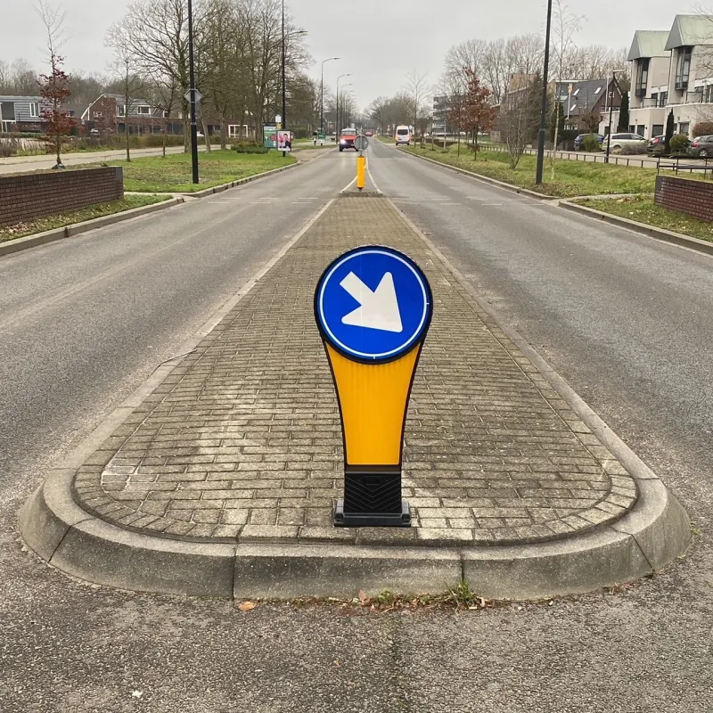 Verkeerszuilen worden geregeld aangereden waardoor de wegbeheerder ze moet vervangen. Tevens veroorzaken ze veel schade aan voertuigen. Beveilig midden-geleiders, vluchtheuvels of rotondes met onze nieuwe flexibele verkeerszuilen BB22-D02 en de verkeerszuil hoeft nooit meer vervangen te worden. Ook de schade aan voertuigen zal tot een minimum worden beperkt. Deze flexibele verkeerszuil voorkomt ook letselschade voor fietsers, bromfietsers en motorrijders. De retroreflecterende folie zit goed beschermd gemonteerd in de verkeerszuil en zal niet gauw beschadigen. Deze verkeerszuilen worden compleet geleverd inclusief een set van 4 bouten en pluggen. Bespaar veel geld en plaats deze flexibele verkeerszuilen.