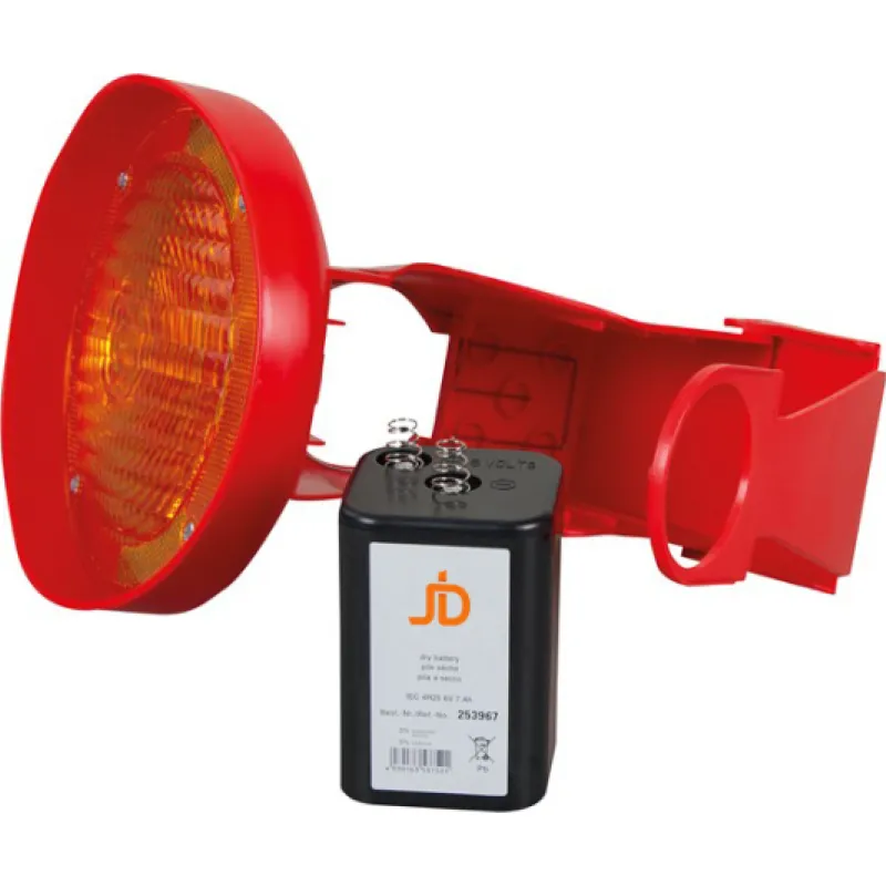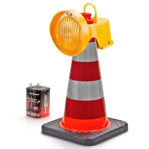 Door het eenvoudig op uw verkeerskegel te plaatsen, wordt het licht geactiveerd door contact en zendt het een constant LED-knipperlicht uit, dat de aandacht van de weggebruiker trekt bij het naderen van een gevaarlijke situatie. Deze LED lamp werkt op een standaard 4R25 6 volt blokbatterij.