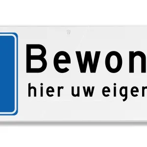 Kenmerken parkeerbord bewoners met eigen tekst
