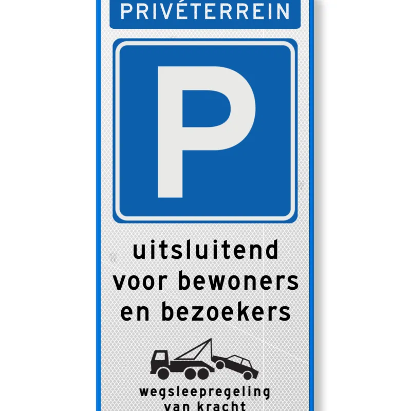 Kenmerken parkeerbord uitsluitend bezoekers bewoners + wegsleepregeling