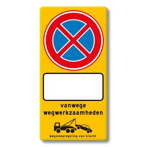 Parkeermaatregelbord + datum en tijden, werkzaamheden