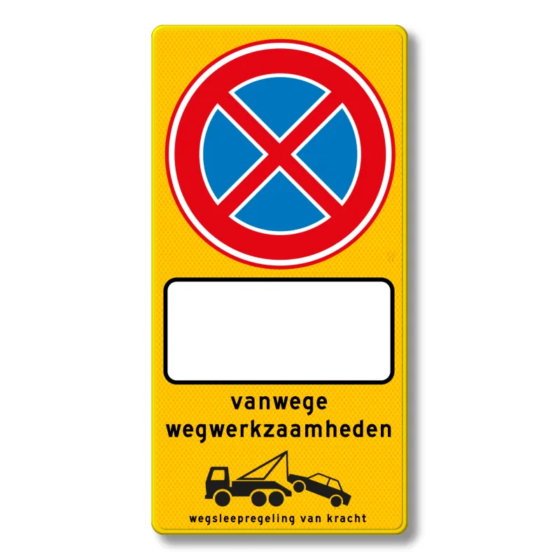 Kenmerken Parkeermaatregelbord + datum en tijden, werkzaamheden