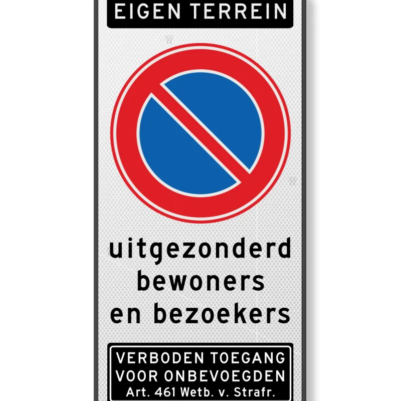 Parkeerverbod bord, eigen tekst, verboden toegang Art. 461
