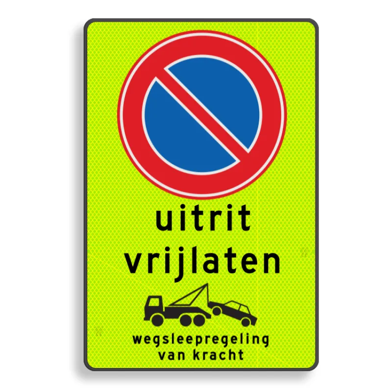 Kenmerken parkeerverbod E1, eigen tekst, wegsleepregeling FLUOR