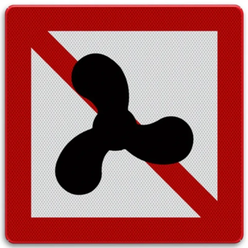 Scheepvaartbord A.12 - Verboden voor motorschepen