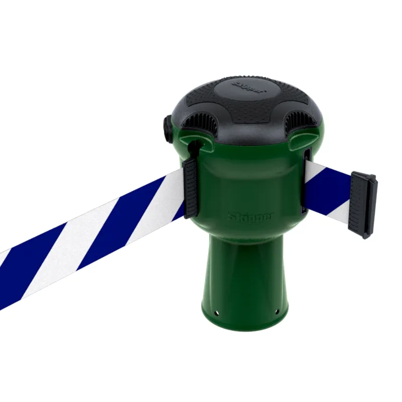 Plaats snel een afzetting of markeer een werkgebied met de Skipper afzetlinthouder met 9 meter versterkt nylon oprolbaar afzetlint. De afzetlinthouder kan eenvoudig en snel op onze verkeerskegels of pionnen worden geplaatst. Trek het afzetlint uit de houder en koppel het met de speciale clip eenvoudig aan de volgende afzetlinthouder. Het afzetlint kan ook gekoppeld worden speciale muurbeugels of magnetische wandbeugels. De lengte van het uittrekbare afzetlint kan geregeld worden met het ingebouwde remsysteem. Via de knop op de buitenkant van de afzetlinthouder kan het lint op de gewenste lengte worden afgesteld. De knop waarmee het afzetlint kan worden geblokkeerd zorgt er voor dat de pionnen stabiel blijven staan en dat het afzetlint gespannen blijft, zelfs bij veel wind. Dankzij de ingebouwde oprolautomaat rolt het afzetlint netjes terug in de afzetlinthouder. Zo blijft het sterke afzetlint beschermt en garandeert het jarenlang gebruik. De gepatenteerde Skipper afzetlinthouder is robuust en betrouwbaar vanwege de hoogwaardige materialen en sterke textieltape. De veelzijdige afzetlinthouder wordt gebruikt in diverse industrieën, van de bouw tot luchthavens en scheepvaart, tot evenementen, detailhandel, facility management en nog veel meer.