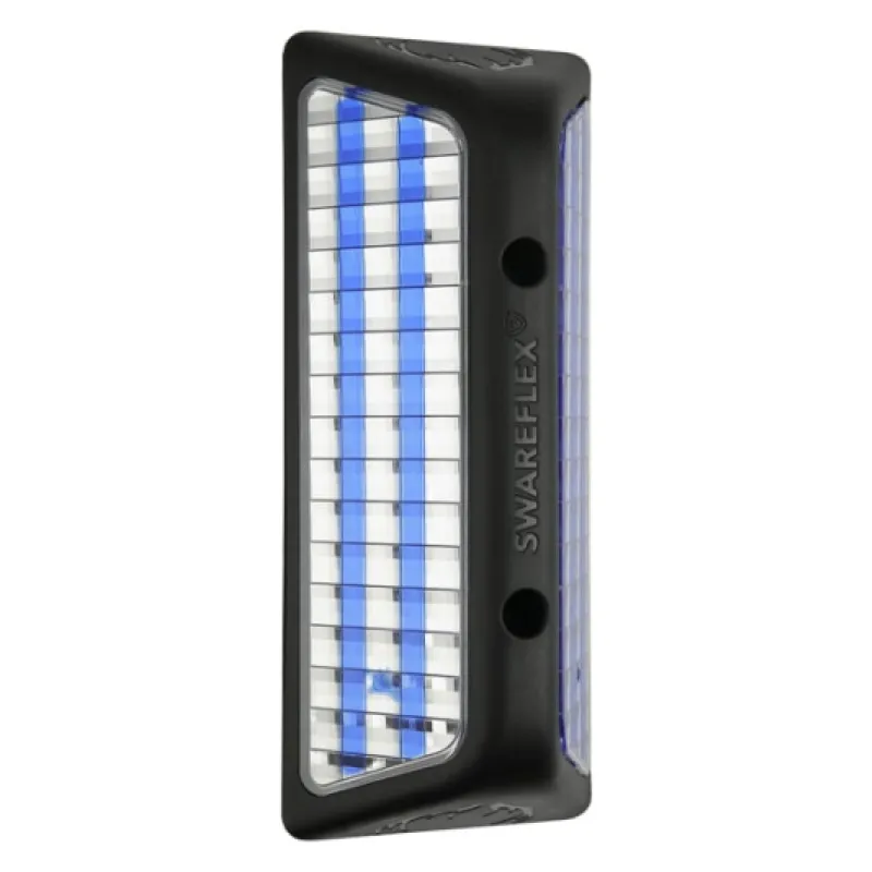 De Swareflex wildwaarschuwingsreflector werpt het licht niet terug zoals normale reflectorpalen of reflecterende tape, maar buigt een lichtstraal van de weg af in een hoek van exact 90°. Deze lichtstraal creëert een optisch waarschuwingshek dat het wild tijdig waarschuwt en bedoeld is om te voorkomen dat ze de weg oversteken. Het veranderende licht van de voertuigen creëert een constant veranderend optisch waarschuwingshek, waardoor het Wild stil blijft staan of weg vlucht naar het bos.
